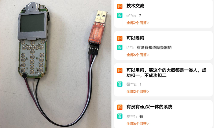 这对于黑产来说就更简单了,短信嗅探技术早已是黑产业界公开的秘密,一台成本仅需十几元的N手设备就可以实现。更让人惊讶的是,用不着传说中的黑市,这些黑产设备在老百姓日常能接触到的电商平台上就正在被公开售卖,甚至黑客们可以在商品问答板块里堂而皇之地“交流技术”。