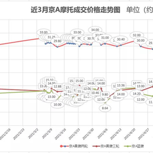 据公众号“摩托上班”数据,近3月京A摩托车成交价格均在30万元以上,最高成交价为34万元,最低成交价为30万元。