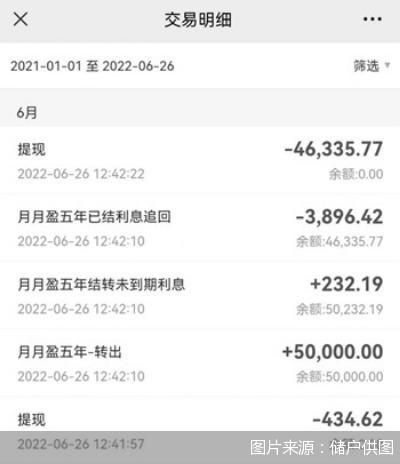 不过,也有一些“手快”的储户成功实现提现操作。“从4月18日线上交易系统关闭至今,我每天都会看银行App能不能提现,6月26日中午12时40分左右我突然发现线上交易开通了,可以提现。”一位来自上海地区的储户向北京商报记者介绍称,“我此前存的是定期产品,在提现的时候定期存款按活期利息计算,我立马把本金和利息一起取了出来。”