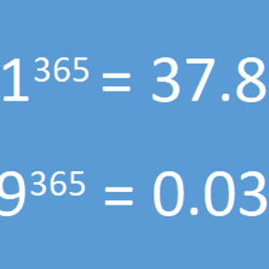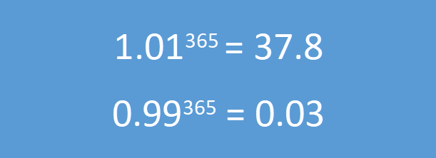 有一则常被使用的“1.01的365次方”励志公式(见下图),以此激励大家“每天多努力一点点(1%),人生的积累会有大不同;而每天倦怠一点点(1%),会离起点越来越远陷入深渊”。