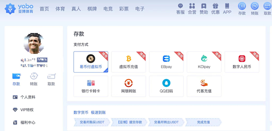 在亚博体育充值页面,北京商报记者注意到,该平台提供的存款方式多达11种,除了常规使用的银行卡转账、网银支付等方式外,还可以使用虚拟货币、数字人民币等进行支付。在部分支付方式下,还提示“建议您存入带尾数的金额(例101、503),以便存款后能更快匹配到账”。