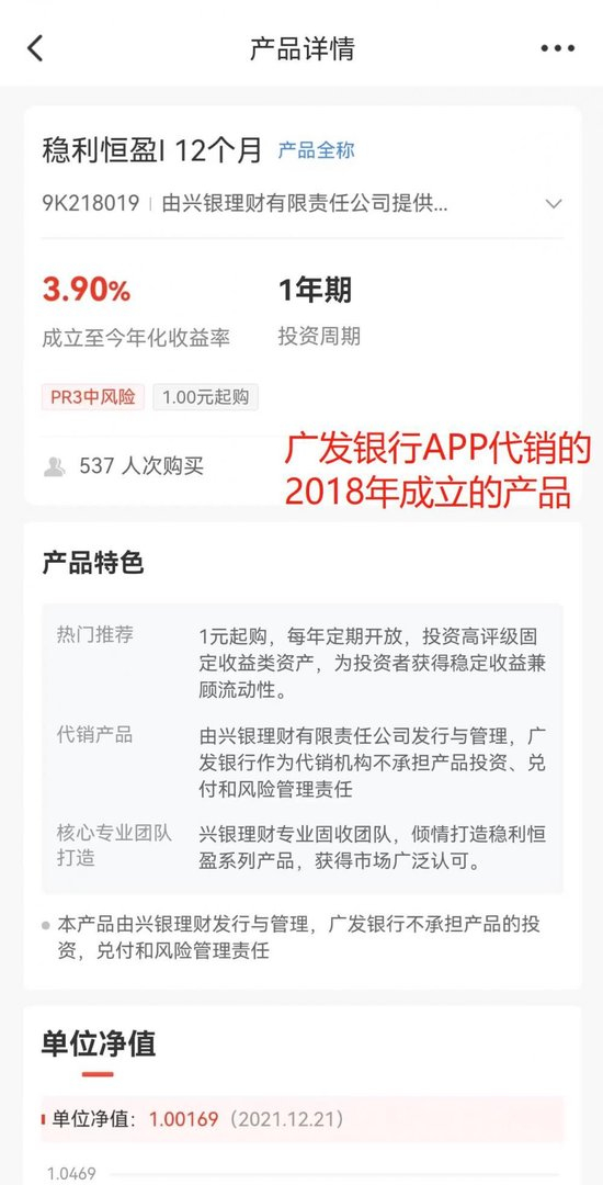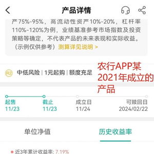 大部分银行APP展示了成立以来的收益率以及1年(含)以内短周期的历史收益率,但运作1年以上的产品当中,普遍存在未展示自产品成立当年开始所有完整会计年度业绩的现象,比如农行APP、建行APP出现了2021年成立的产品没有展示完整会计年度业绩的现象,再比如工行APP有一只2020年成立的产品也未展示完整会计年度的业绩,仅展示成立以来、近1年及以下周期的历史业绩。