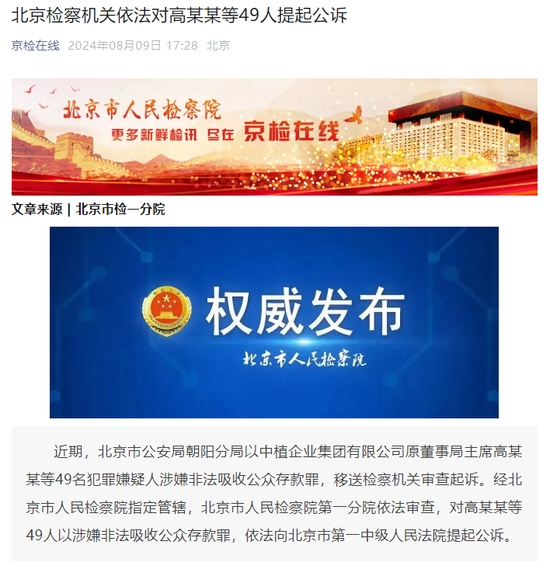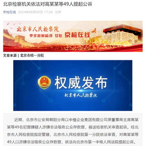 北京检察机关依法对中植企业集团原董事局主席高某某等49人提起公诉