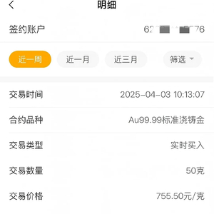 “755.5元/克买入,花了37775元,5天亏了1500元左右。”8日,四川投资者美美(化名)告诉中新经纬,清明假期期间,她帮妹妹从银行购买了50克可提取实物的积存金后,将金条取出打了金首饰。