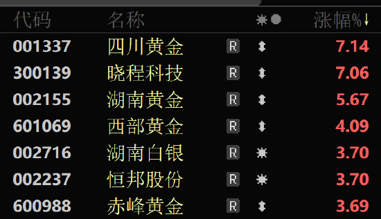 受金价回暖带动,五一小长假后首个交易日贵金属概念股也整体飘红。截至下午收盘,Wind贵金属指数报涨2.3%,个股中四川黄金涨超7%,湖南黄金涨5.67%,西部黄金涨超4%,湖南白银、恒邦股份等多只个股涨超3%。