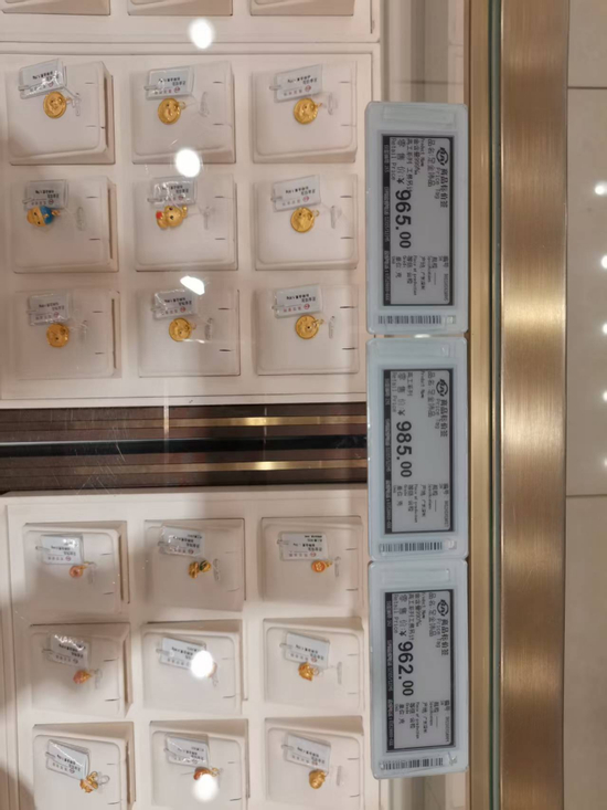 5月15日,菜百首饰足金饰品跌落1000元/克以下。新京报贝壳财经记者徐雨婷 摄