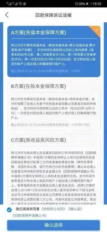 有些客户在麦子还在做方案投票时反映了如下情况:担心选择方案a和b后债权转让给诺友后手上就没债权了,或者担心选择B方案后短期需要资金时没办法拿到钱,或者担心选择方案A和B方案以后会不会钱都让麦子挣去了。针对这些不信任,麦子出台了方案C,可以解决以上三个问题。