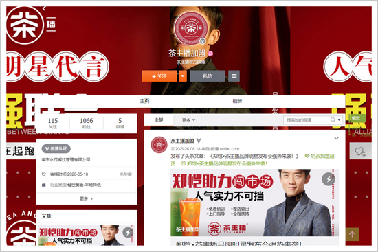 想要加盟开店的付女士,在一家品牌加盟网站留下联系方式,很快接到自称该品牌商务经理的电话。该经理以当地加盟商招满为由推荐了另一个项目——“茶主播”,并一再强调是明星郑恺代言的。