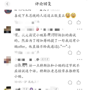 楼内很多帖子表示有类似经历,一位网友声称,在握有小鹏offer后,面试特斯拉交付岗位,为增加筹码,便顺口一提有小鹏offer,特斯拉直接不通过面试。