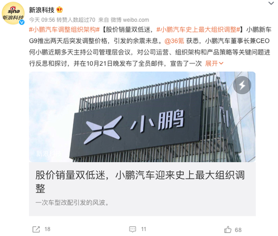 销量下滑!股价下滑!小鹏汽车调整架构急救火