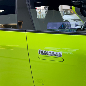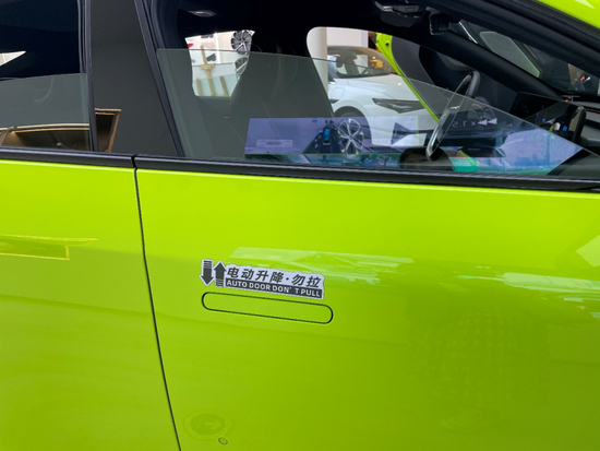 也许是发生的次数太多了,小鹏在车门上贴了一行醒目的中英双语提示:电动升降,勿拉(AUTO DOOR DON’T PULL)。