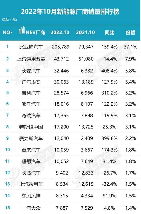 根据乘联会最新发布的10月新能源车销量排行榜,广汽埃安以30063辆的成绩位列第四,超过了理想、蔚来和小鹏销量之和。今年前10个月,广汽埃安累计生产新能源车21.51万辆、销售21.24万辆,同比增长139.5%和134.4%,提前2个月完成20万辆的年销售目标。