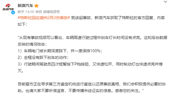 这一次特斯拉的回应速度倒是快了不少,结果也就一句话,车主没踩刹车。