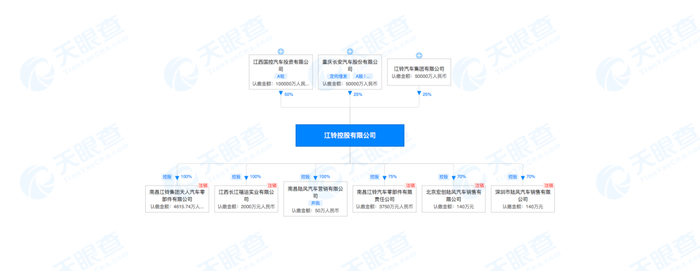 目前江铃控股由江西国控汽车投资公司、重庆长安汽车股份有限公司、江铃汽车集团有限公司共同持股,三方持股比例为50:25:25,经营范围包括生产汽车、汽车零部件等等。汽车行业关注注意到,天眼查股权穿透显示,江铃控股旗下控股六家子公司,但六家子公司中已有五家处于“注销”状态,仅剩南昌陆风汽车营销有限公司,而这家公司也已被列入失信被执行人名单中。另外,风险信息显示,目前江铃控股存在多条被执行人信息,被执行总金额超4891万元。