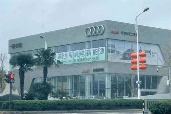 “被逼疯了”,4S店外墙上挂出横幅:奥迪也有纯电新能源