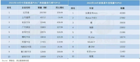 而10月的新能源汽车销量TOP10排行榜显示,蔚来踩线入榜,小鹏、理想均在榜单之外。与其相反的是,前十名中,传统车企的新能源汽车公司占据六席,且包揽前五名。而新能源车型TOP10的情况更为极致,上榜车型全是传统车企的新能源汽车品牌。