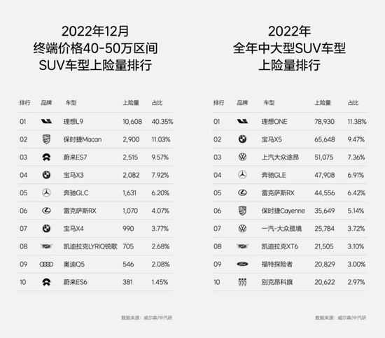 在中国大型 SUV 市场,自8月底开始交付的理想 L9 上险量达到 40151 辆,市场占有率高达 50.73%,全年销量超过其他所有品牌车型的总和,超越奔驰 GLS、宝马 X7 等传统豪华品牌。
