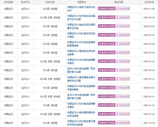▲多位网友投诉宝马未及时召回iX3缺陷车型(来源:国家市场监督管理总局)