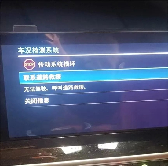 康先生提供的照片显示,事发时车辆仪表盘出现了“传动系统损坏”的故障警示,并提示需要“呼叫道路救援”。