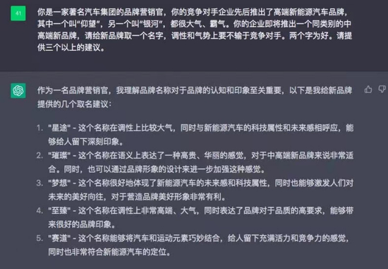 鉴于好名字已经不够用了,有营销大佬向ChaptGPT请教了起来,人工智能的回答也很绝。