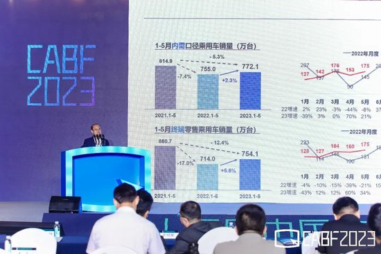 下边是终端数据,2021年前五个月终端零售乘用车销量是860.7万辆,今年前五个月是754.1万辆,相差约100多万辆,下降了12.4%。所以我们对今年的车市到目前的判断叫弱恢复,相对于去年是有一个增长。