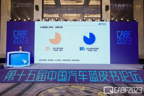 这是我们对比亚迪的调研,100个买比亚迪的人里有73个家里面只有一辆车,27个人家里面有两辆车,而全社会有车家庭里面有一辆车的家庭占84%,两辆以上车只有16%,换句话说现在的插电式混合动力车型可以进入到只有一辆车的家庭,而原来纯电动汽车是家庭第二辆车才买,所以这个是不一样的,这是一个大的变化。