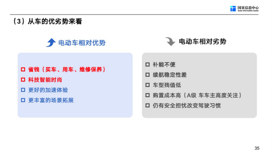 劣势是补能不便。去年我们做的一个调研,在公共充电桩平均充电时间58分钟,加个油大概是2-3分钟,效率是20倍到30倍的差异。如果前面有一个人或者有两个人在那等着充电,这就不一样了。所以我想一定有一批人他不愿意牺牲那个时间,而且我们现在预判越往后面走,消费者买车就越客观理性,考虑实用性。