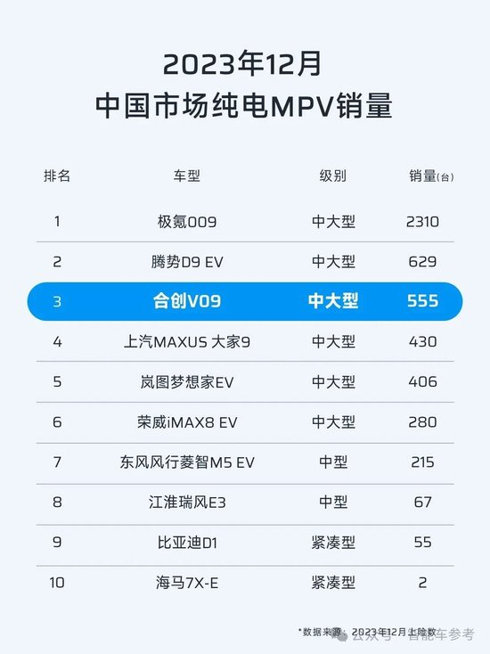 后来宣布合创V09销量进入国内纯电MPV前三,实际只有555辆,整个品牌年销量也没超过2万辆。
