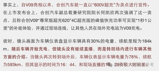 更关键的是,合创V09这个800V高压快充的最大卖点,还在发布会上‘翻车’了。