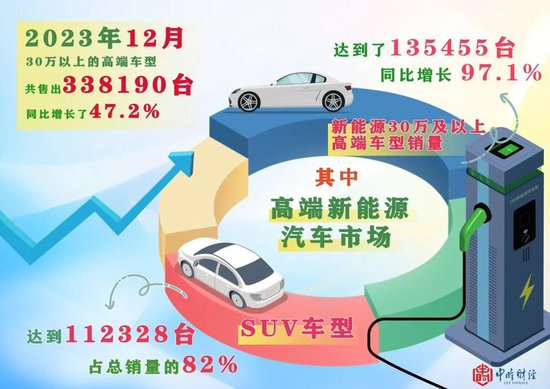 随着新能源汽车的普及程度不断提升,高端新能源汽车市场呈现出了蓬勃的增长态势。根据乘联会发布的数据,2023年12月中国市场售价在30万元及以上的高端车型共售出338190台,同比增长了47.2%。其中,新能源30万元及以上高端车型的销量达到了135455台,同比增长了97.1%,已占据整个高端车市场份额的40%。