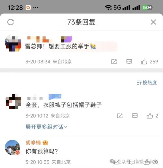 雷军发表微博后,小米集团总裁卢伟冰、小米公关总经理王化和顾问胡峥楠先后发声,表示参与了SU7测试。
