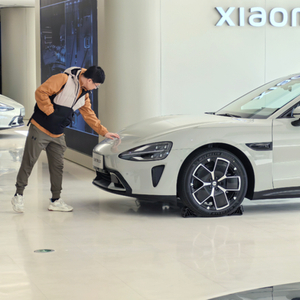 在北京一家小米汽车零售门店内,一名消费者在了解小米SU7汽车。鞠焕宗摄(新华社)
