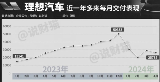 但这个目标似乎也不容易达到。理想汽车前4个月交付约10.6万辆,这意味着接下来8个月时间里,月销量至少要5.7万辆。但今年前四个月,理想汽车的月交付一般为2万多辆,最高也才到3万。