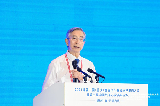 6月17-18日,2024首届中国(重庆)智能汽车基础软件生态大会暨第三届中国汽车芯片高峰论坛在重庆召开。本次大会以“基础共筑,开源启航”为主题,由中国汽车工业协会、重庆市经济和信息化委员会主办,中国电子科技集团有限公司联合主办,普华基础软件股份有限公司、中国电科芯片技术研究院、西部科学城智能网联汽车创新中心协办,西部科学城重庆高新区管委会承办,旨在为我国汽车软件和芯片产业发展搭建高端务实的专业交流平台,分享创新成果,打造产业生态,构建开源、开放、创新的生态体系,助推汽车产业高质量发展。其中,在6月18日上午举办的高峰论坛上,中国工程院院士倪光南发表精彩演讲。