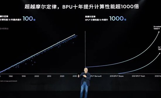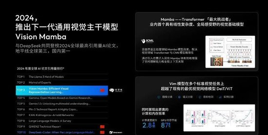 我们去年发表了一篇论文提出叫Vision Mamba,全球一共去年发表了4万多篇人工智能领域的学术论文,有10篇是最高的,其中三篇来自于中国。地平线推出的Vision Mamba中国引用率第一,全球引用率第三。跟传统的主干网络,具有线性计算复杂度,而不是二次方的计算复杂度,所以它大大简化了计算复杂度,提升了计算性能,同时保持极高识别效率,所以它会成为新一代智能驾驶主干网络。大家最近有看到一些新闻包括腾讯很多公司也在推基于Mamba和Transformer的混合网络,顺便也可以提一下,DeepSeek也是这里面十篇引用率最高的论文之一。得益于对算法,软件芯片架构方面的持续研发投入,大家可以看到,如果说过去10年摩尔定律的进展是100倍的话,通过我们软件跟硬件的联合优化,我们在过去10年,地平线的底层计算架构BPU性能提升超过1000倍。