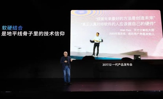 关于技术的选择。我给大家分享2017年地平线第一次产品发布会时我的PPT,那时我的身材可能比现在还稍微好点,发量也比现在多一点;但是有的东西是不变的——我们骨子里面的技术信仰就是软硬结合。软硬结合这件事情,全世界真正去做的公司非常少,我引用了天才计算机科学家Alan Kay的一句话,“你要真正认真对待你的软件,你就要真正做你的硬件”。他说出这句话时没人懂,全世界唯一真正信仰他的人就是乔布斯。苹果是真正信仰软硬结合的,后来乔布斯也把Alan Kay请到了苹果,还有一家公司——特斯拉相信软硬结合。