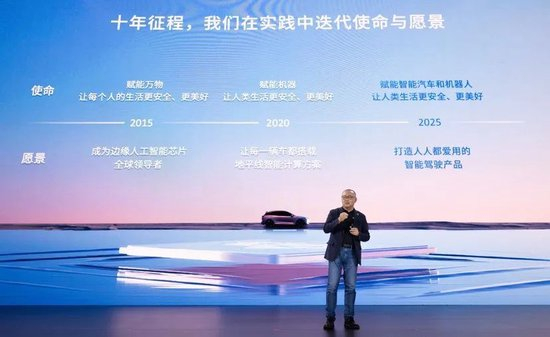 创业十年来,我们坚持干着这件事,还在让每一辆车、每一个电气都具备智能的能力。我很难把创业的点点滴滴都讲清楚,但我觉得创业就是从挫折走向挫折,从失败向失败,“高光时刻”只是一瞬间。在这十年中,我们还是有成长的。不变的是我们的初心——给汽车和机器人时代打造计算平台,它的价值和意义就是我们的使命和愿景。