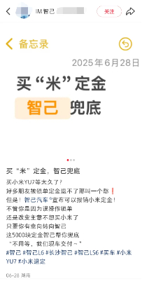 比如,一位智己汽车销售就发帖称,买“米”定金,智己兜底。他表示,不管你是因为误操作锁单,还是改变主意不想买小米了,只要你有意向转向智己,这5000块定金智己帮你兜底。“不用等,我们现车交付”,该销售说道。