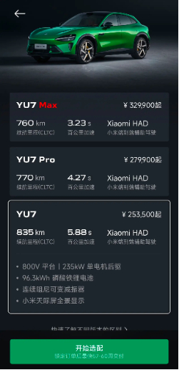 《次世代车研所》在小米汽车App中看到,目前,小米YU7标准版锁单后最快57-60周交付,小米YU7 Pro锁单后最快50-53周交付,小米YU7 Max锁单后最快38-41周交付。