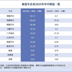 7月1日,国内造车新势力相继披露了今年6月及上半年的销量数据。零跑、鸿蒙智行、理想上半年销量均突破20万辆,其中零跑以22.2万辆同比激增155.7%的成绩首度登顶半年销量榜。