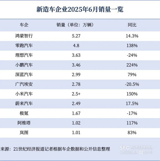 造车新势力半年销量出炉:零跑首次登顶,小米反超蔚来,仅小鹏目标完成过半