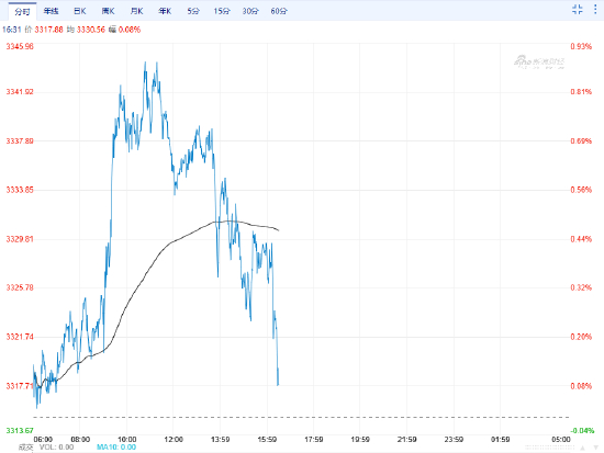 现货黄金由涨转跌,现报3315.03美元/盎司