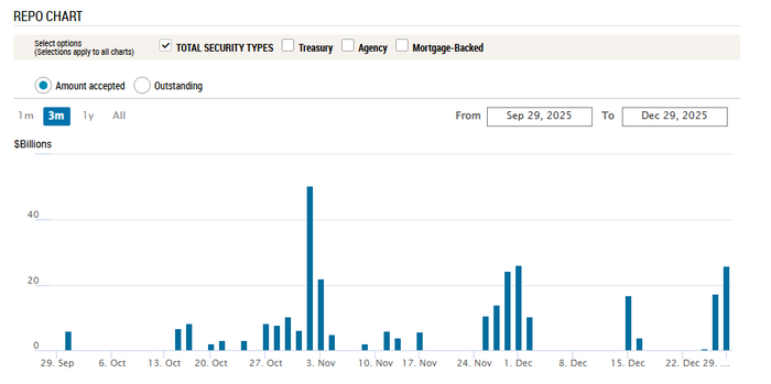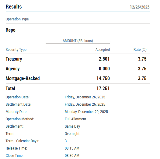 谣言中自然有其“真实”的地方。例如,美联储确实运行着与银行系统间回购机制——而且上周五美联储确实通过隔夜回购机制向银行系统注入了172.5亿美元。这是纽约联储官网上明确可以查询到的信息。