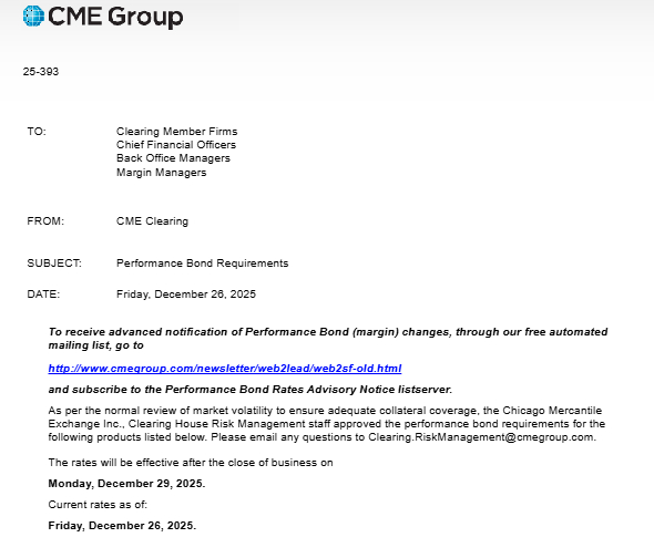 在上周五,芝加哥商业交易所(CME)确实在两周内第二度宣布上调白银交易保证金要求,新规于12月29日生效。然而,如果真的有大型清算会员未能满足芝商所的追加保证金要求并被清算所强平,那么即便从外部看比较模糊,也会有很多事情必须公开进行。