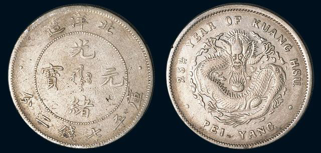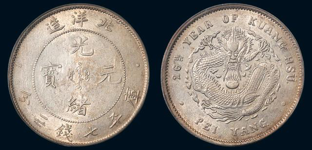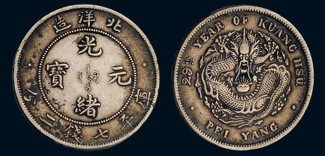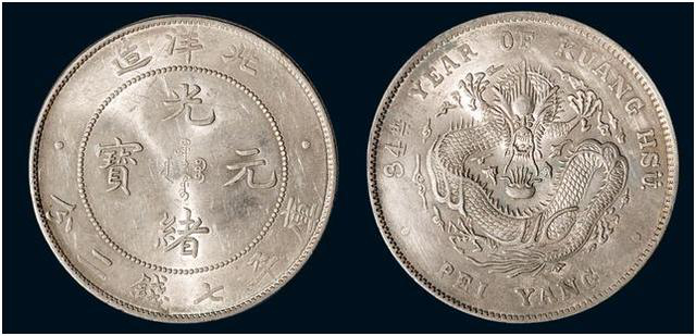 (三十四年(1908年)北洋造光绪元宝七钱二分银币)