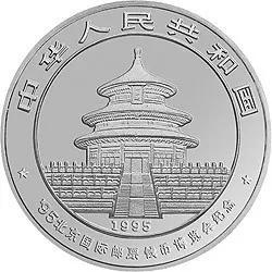 我国发行的第一枚“熊猫加字”纪念币是1995北京国际邮票钱币博览会纪念银币。