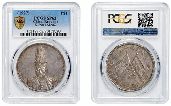 民国十六年(1927年)褚玉璞像背双旗人像银币