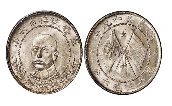民国稀有银币之中华民国唐继尧拥护共和银币 新浪投资综合 2019.03.2010:56 关注 ▲唐继尧正面像拥护共和纪念库平三钱六分银币为纪念反袁拥护共和胜利,1917年8月云南造币厂开铸唐继尧纪念币,有金、银、铜三种材质。其中纪念币正面为唐继尧头像图案,上书“军务院抚军长唐”;背面为交叉的九角十八星旗和五色旗图案,上书“拥护共和纪念银币”发行量都只有数百枚,均极为罕见。 来源:第一白银网