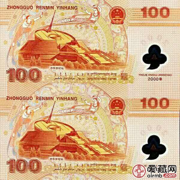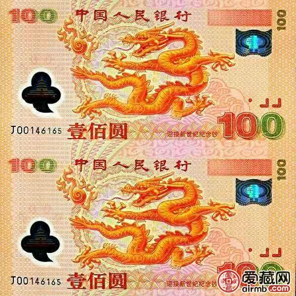 2000年是特殊的一年,是新世纪的开始,也是千年之始。也是我国建国以来遇到的第一个千禧年,而由于2000年正好也是龙年,龙在我国人民的心中一直是个神圣的存在,我们也一直以龙的传人而自称。所以为了记住这个难得的龙年,中国人民银行发行了面值百元的2000年千禧年双龙钞,让所有中国人一起欢呼庆祝。2000年千禧年双龙钞一经发行受到了藏家们的热烈追捧,而现在距离2000年千禧年双龙钞的发行一经过去了近二十年,现在就带大家一起了解下2000年千禧年双龙钞值多少钱。