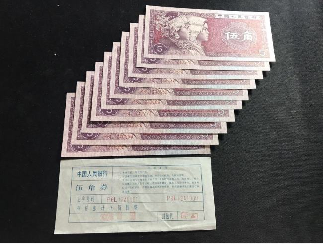 二、5角纸币的“关门币”。结合第一点,行业内有专业人士透露,我国第五套人民币不再发行新的5角纸币,而是继续沿用1980年5角人民币,这是否意味着我国流通市场逐渐消耗完5角纸币,人民日常使用对5角纸币的需求越来越少的时候,中国人民银行将大有可能落地实行面值低于1元的人民币硬币化,从此不再发行5角纸币。所以,这枚1980年5角人民币可能会成为5角纸币的“关门币”,因此,行业内有藏家看中这一点,对1980年5角人民币也投入了会更多的投资热情。